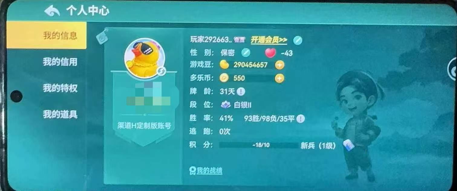 编号{29}出通行证登录纯豆子号,1.3亿豆子,大乱斗无需投资,不需要充值,安卓苹果都可使用。